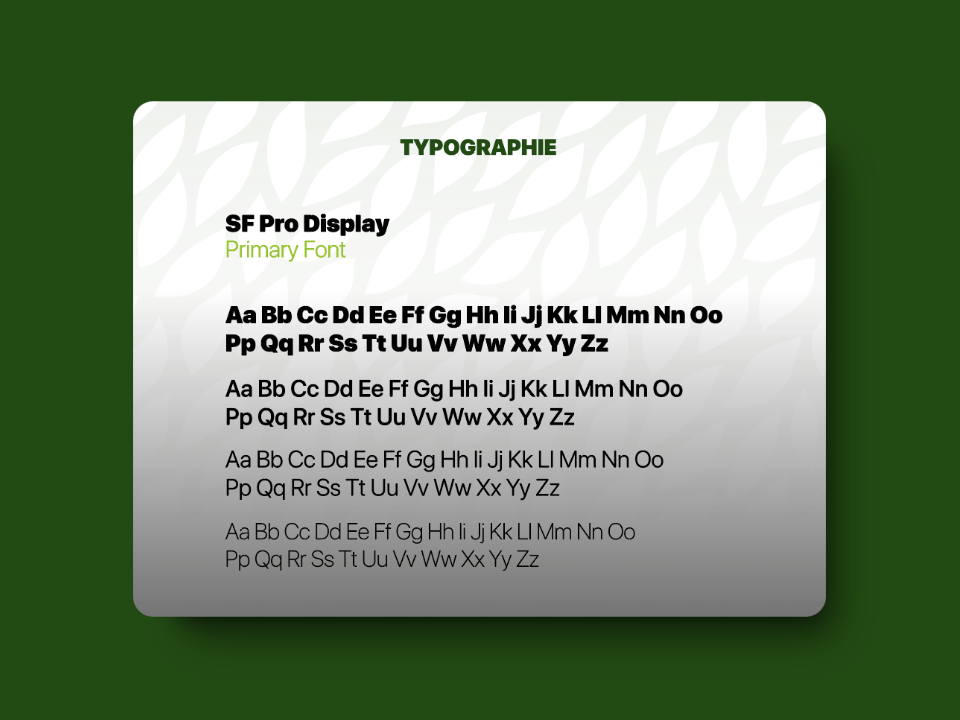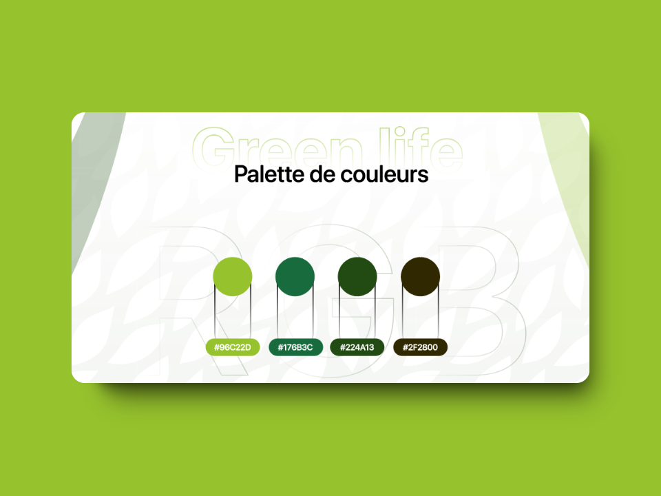 This is an image of a card with four icons representing different graphic elements. The icons are: a circle, an oil drop, a tree leaf and an olive leaf. The card is black with a green background. The icons are white and have titles in French. The card has the title "elements graphique" at the top.