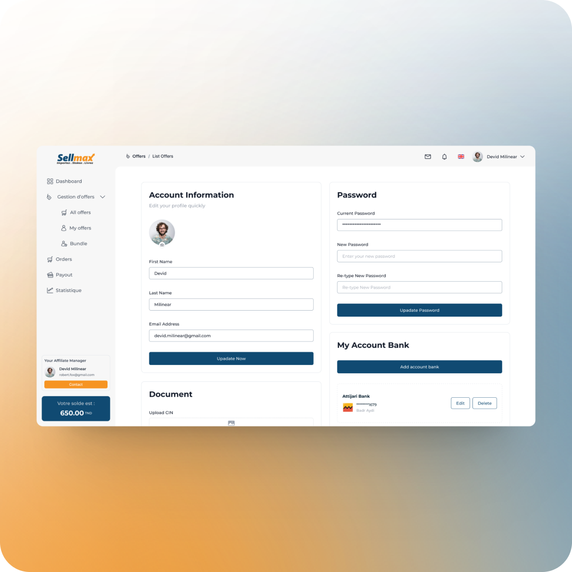 SellMax is a powerful and user-friendly web application designed to streamline and optimize the drop shipping and order management process. With a focus on intuitive design and advanced functionality, SellMax helps merchants efficiently manage their operations and drive growth.